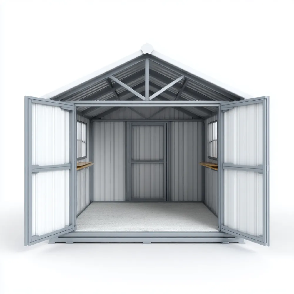 Dieser geräumige Metall Geräteschuppen ist die ideale Lösung zur Aufbewahrung Ihrer Gartenwerkzeuge und Geräte. Er vereint Robustheit mit einem eleganten Design, das in jeden Garten passt.